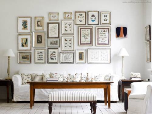 Начнём с самого простого — множество красивых рамок с семейными фото, картинами или поделками детей легко объединятся в интересную композицию на стене.